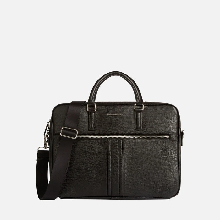 Practical unisex briefcase designed for business purposes. Damien is a functional briefcase that will prove to be indispensable on a day-to-day basis. A perfect choice for the office, it will protect your laptop or work papers, but has also been designed for traveling. It has been crafted from supple black leather and boasts a versatile and contemporary design.