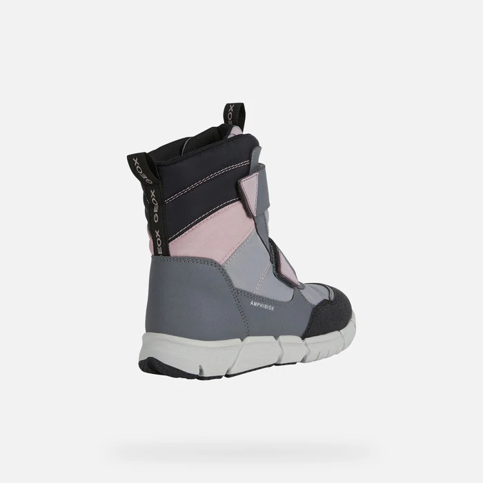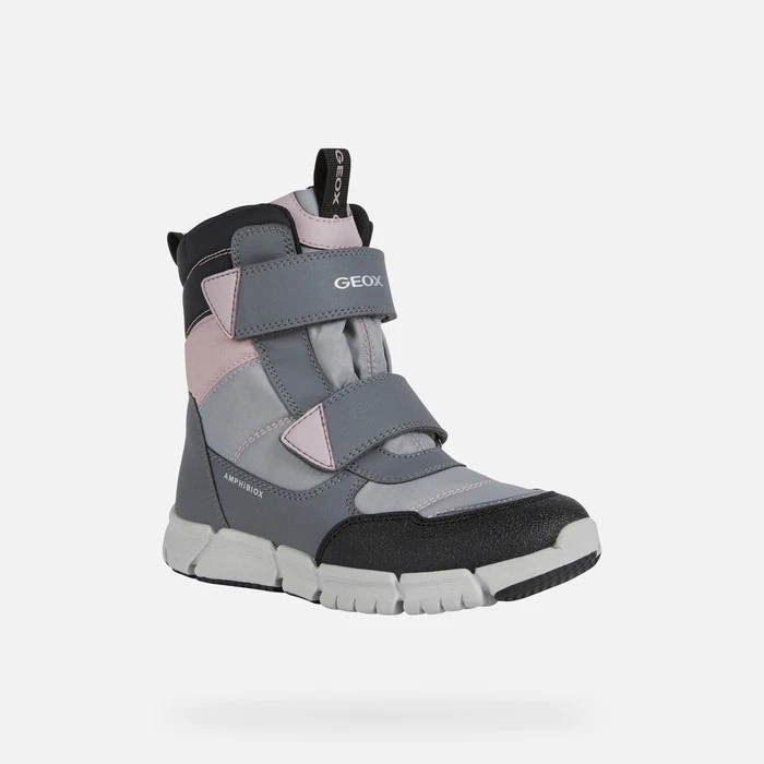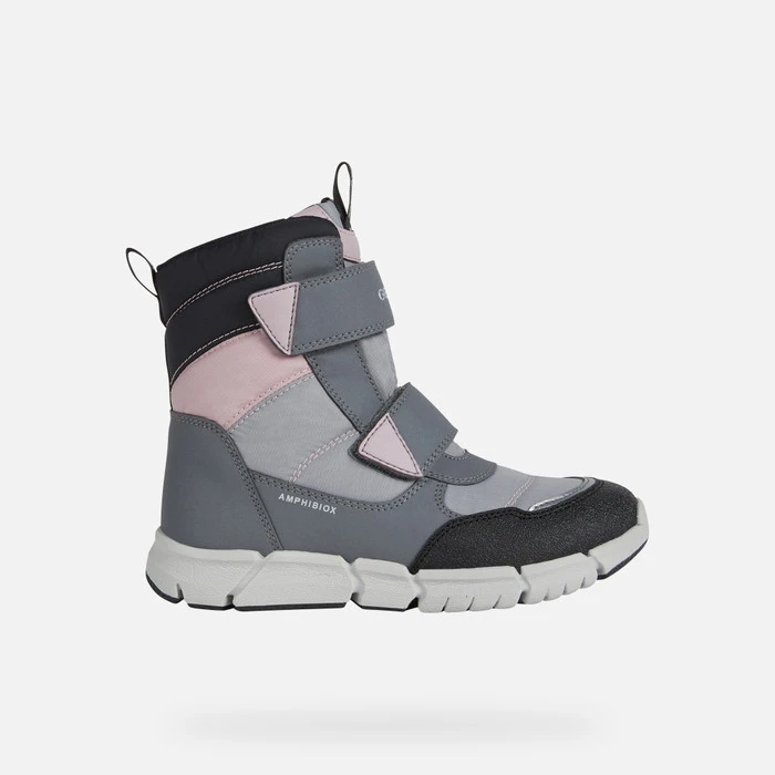A precious ally on chilly winter days, Flexyper ABX is a comfortable cozy ankle boot endowed with waterproof technology and set on a flexible innovative outsole. Loaded with laid-back stylishness and energized with an active vibe, this gray-and-pink version in nylon with leather-effect-material accents is a comfortable wear-now/wear-later piece that will be a perfect match to everyday outdoor outfits.