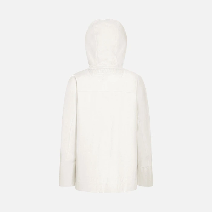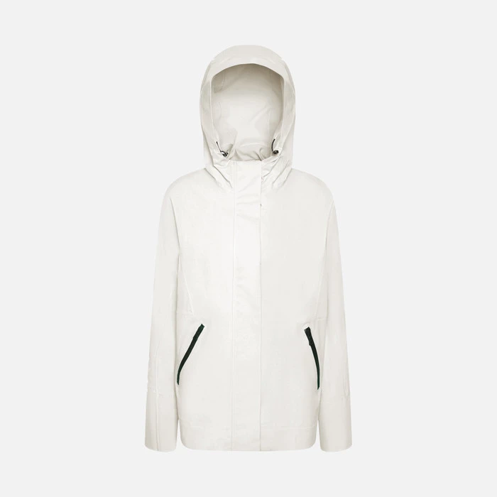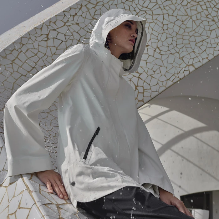 Women’s short hooded parka jacket has a waterproof breathable design with a casual refined aesthetic. This unfussy white version has been made from recycled bonded twill polyester and boasts heat-sealed detailing. Gendry is an urban-looking environmentally friendly piece of outerwear with a contemporary cut and distinctive kimono sleeve that delivers stylishness, comfort and the utmost protection.