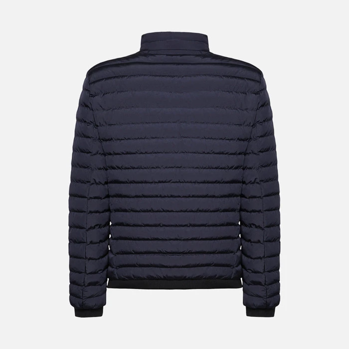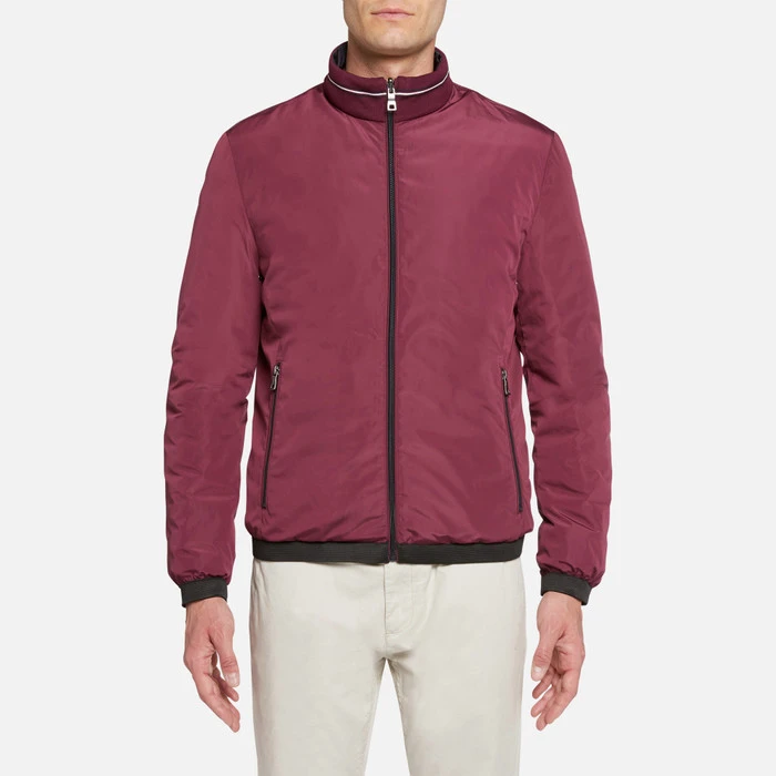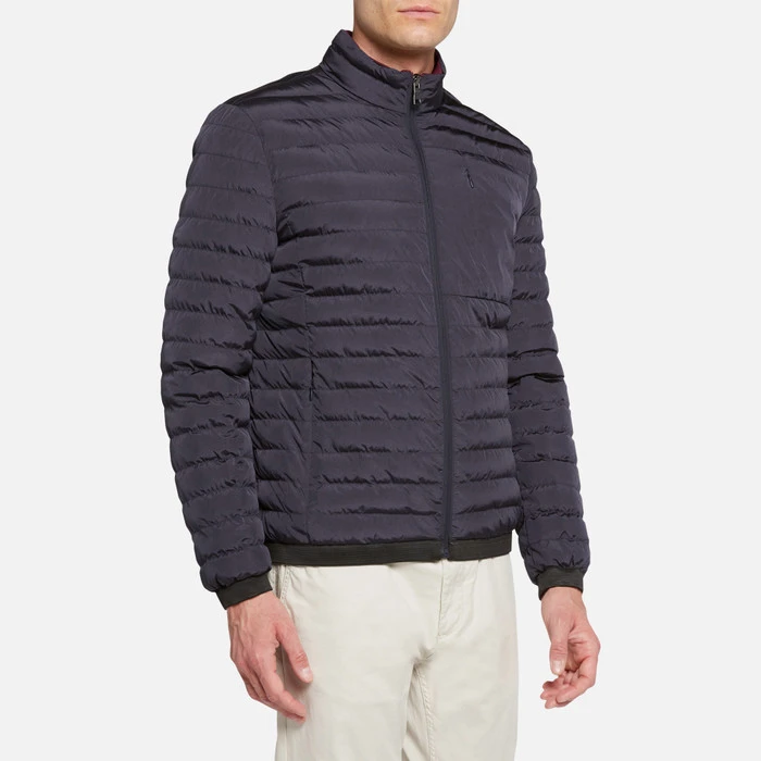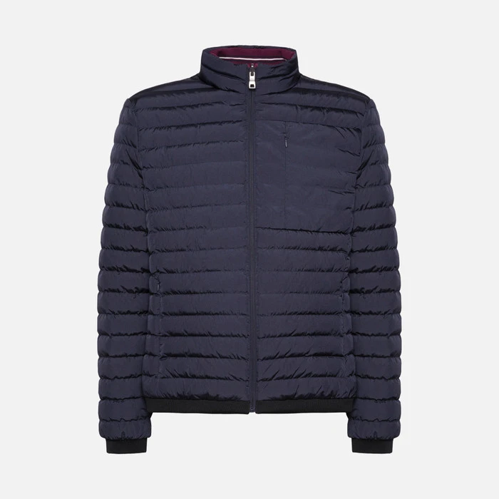 Men’s short jacket with a reversible design and sustainable core. Blue on one side and claret red on the other, Genova is a casual-looking double-face garment that will be ideal for traveling and can be adapted to suit your mood and the occasion. Rendered in a versatile durable fabric with a windblocking and rainproof finish, it has an environmentally friendly padding of cozy lightweight synthetic recycled EcologicWARM down.