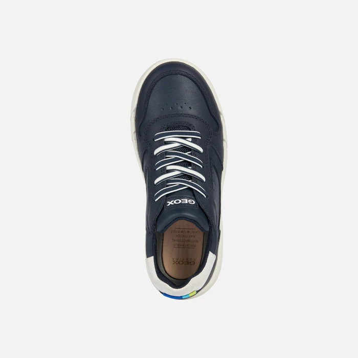 Boy’s comfortable breathable low-cut sneaker packed with sporty-casual stylishness. This version in navy blue and white stands apart for its pristine aesthetic and contemporary silhouette. Hyroo has been crafted from supple nappa and a leather-effect material, delivering a long-lasting sensation of well-being and perfectly complementing everyday outfits.