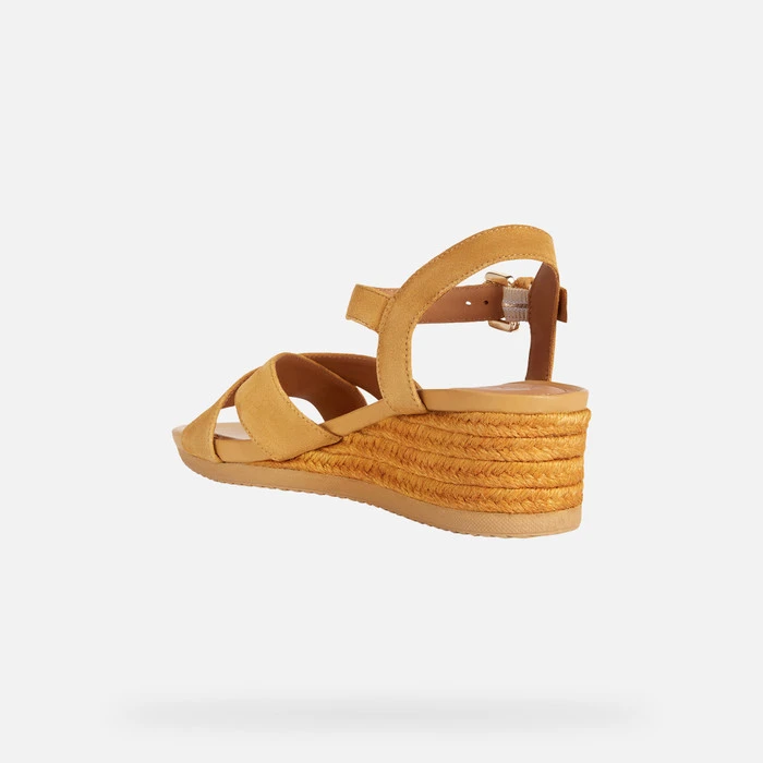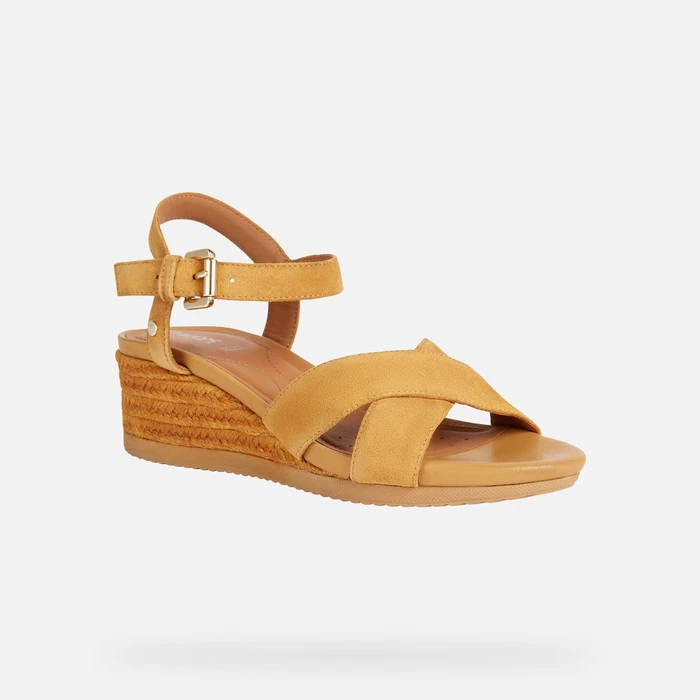 Women’s breathable and comfortable sandal drawing inspiration from espadrilles. The weave pattern on the wedge of the Ischia Corda sandal is a clear reference to Spanish espadrilles and brings out the laid-back summer beauty of this piece of footwear. Crafted from suede leather in a mustard yellow shade, this stylish comfortable shoe was designed with relaxed summer days in mind.