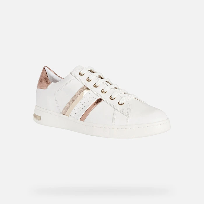 Women’s lightweight breathable low-cut sneaker packed with timeless refinement. This supple-nappa version of Jaysen comes in an attractive white-and-rose-gold colorway with detailing in gleaming metallic leather. With a casual feel, it has a sleek silhouette that taps into a classic tennis-shoe design and will enhance the plainest outfit with contemporary sporty appeal.