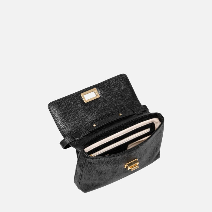 Women’s versatile mini bag with a pristine silhouette that will be perfect for a desk-to-dinner look. Liliane is a multi-purpose outfit-friendly mini bag that can be either suspended from a metal shoulder strap during the day or clutched in the hand with an elegant ensemble at night. It has been crafted from leather in a versatile black palette.