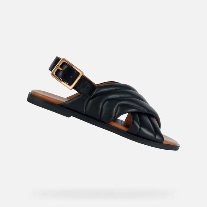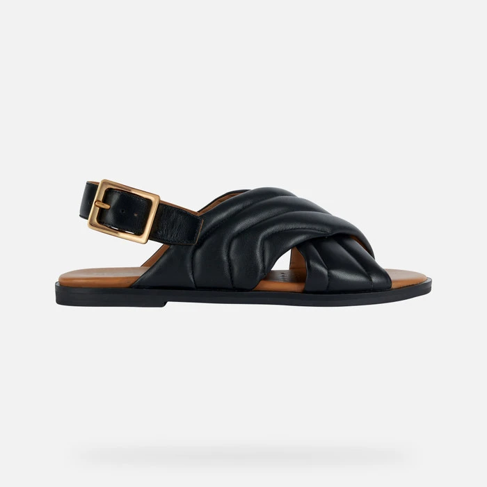 Lightweight breathable flat sandal for women loaded with urban appeal and casual charm. This easy-to-match black version features a soft-nappa upper and quilted crossover straps. Naileen will lend itself to a host of different occasions and instantly inject elegant stylishness into everyday outfits.