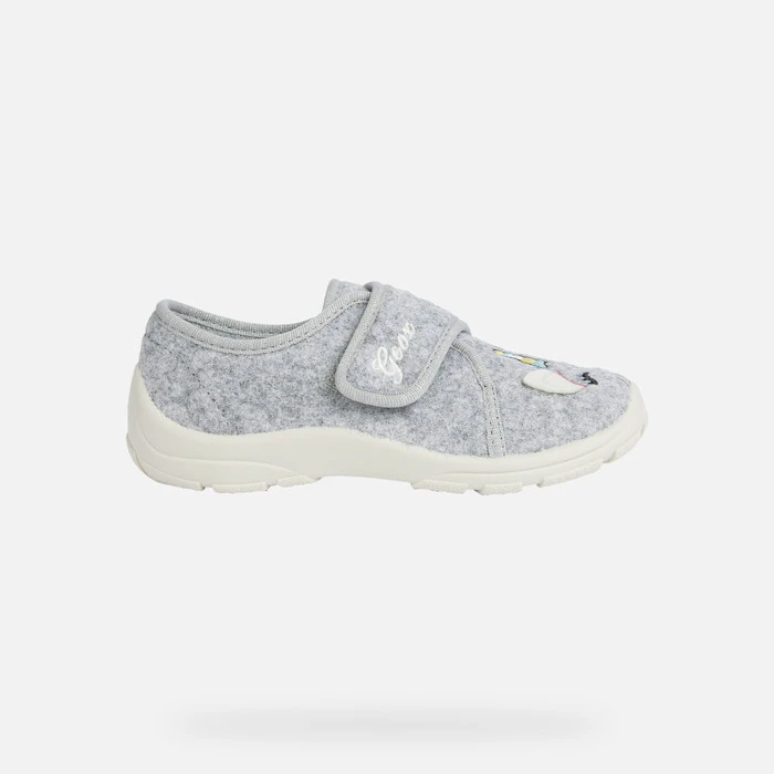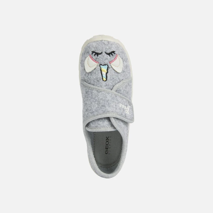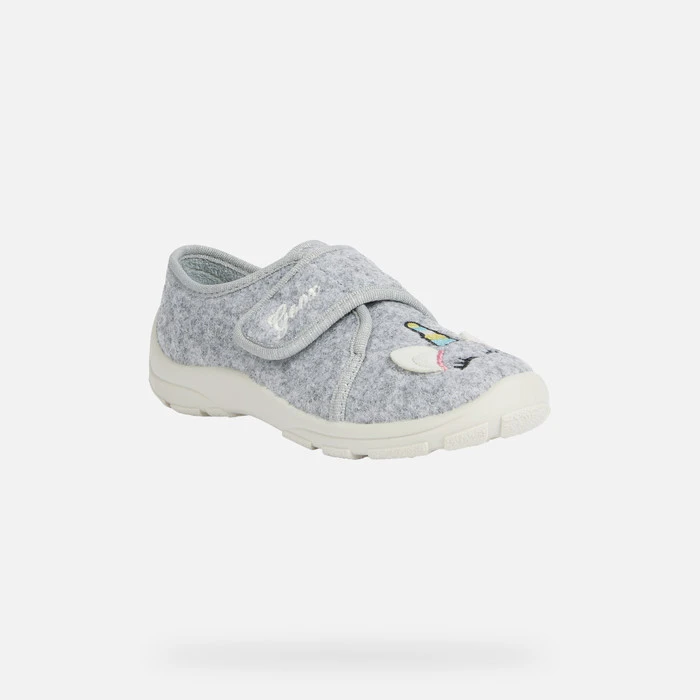 Junior slipper with a cozy breathable design. This green version of Nymel comes with an upper in felt and fabric with embroidered detailing and decorations. It has an easy entry and flexible non-slip sole so children can tear around the house safely with comfortable feet.