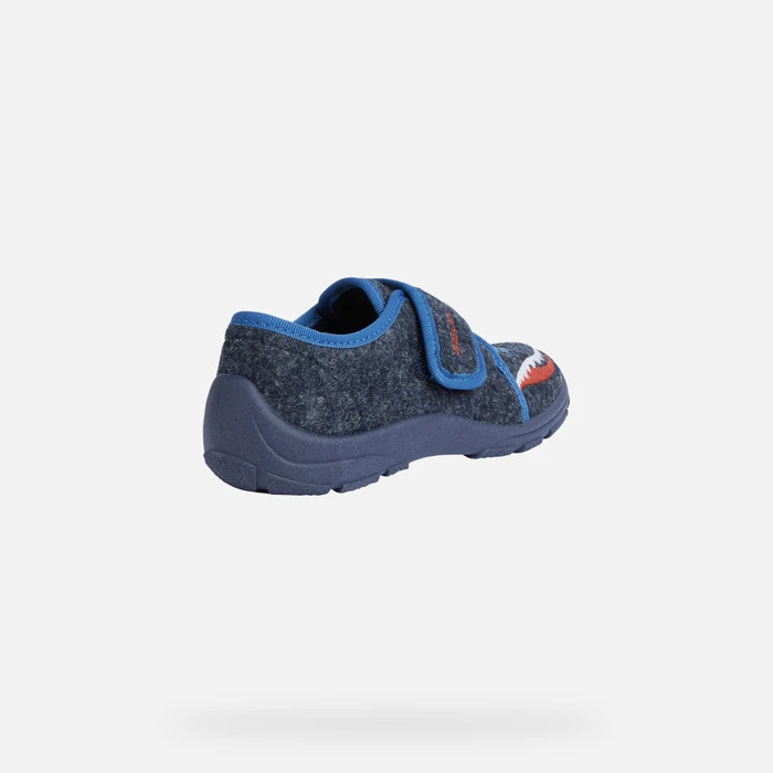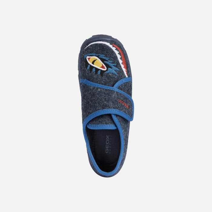 Junior’s warm breathable slipper with a comfortable fit that adapts perfectly to the foot. This navy-blue version of Nymel comes with an upper in felt and fabric with embroidered detailing in a contrasting color. The non-slip outsole guarantees stability while the velcro fastening allows for rapid width adjustment and a snug fit.