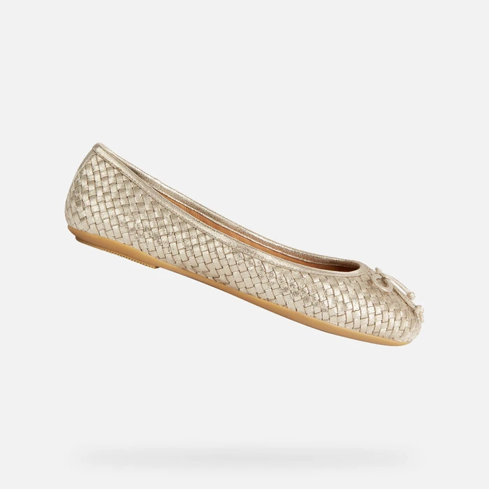 Lightweight breathable ballet flat for women with an urban aesthetic and a comfortable design. With a pared-back sleek silhouette, this sophisticated light-gold version boasts a woven upper in metallic leather embellished with a classic bow detail. Palmaria is both versatile and feminine and will enhance any outfit with a casual-chic touch, making it ideal for office occasions and leisuretime days alike.