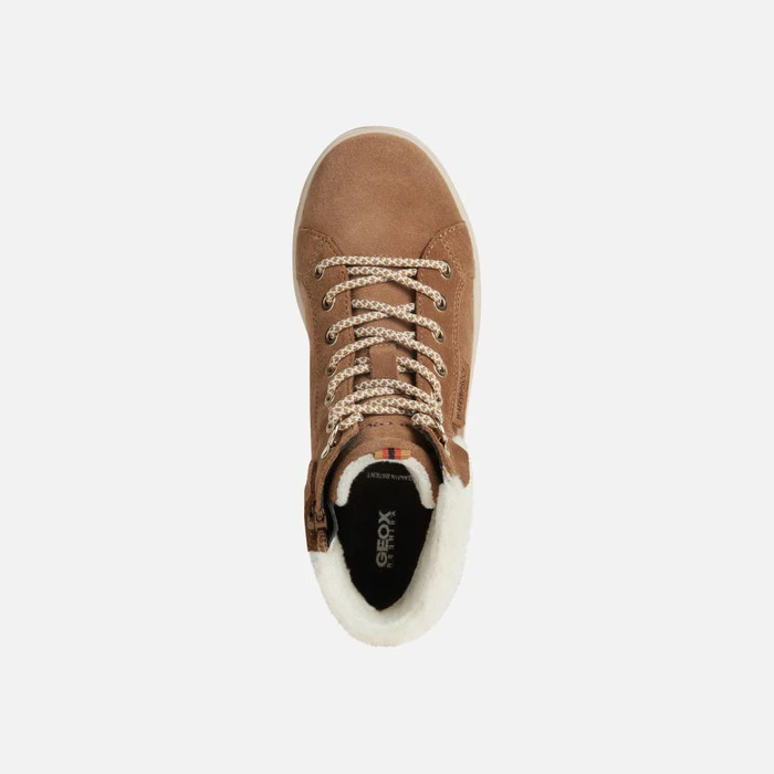 Girl’s mid-cut sneaker with a cozy water-repellent design and Nordic note. A winter-wardrobe foundation piece, Rebecca has an upper made from cognac-brown suede with faux-fur detailing. Created with athleisure looks in mind, it will deliver stylishness and comfort even in icy cold weather.