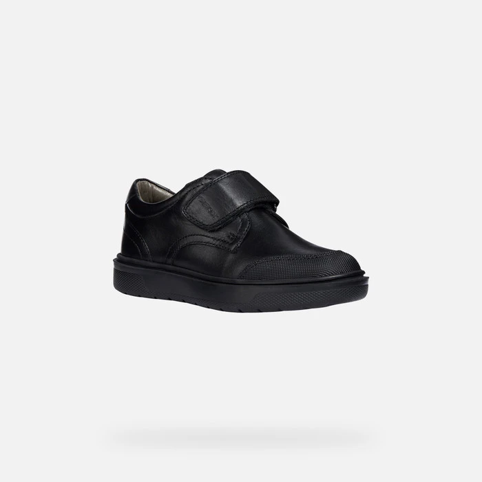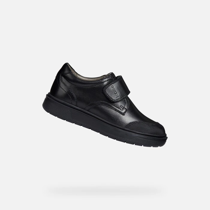 Comfortable and breathable boy’s shoe, suitable for formal occasions.With its discreet all-black palette and ageless aesthetic, Riddock is an unfussy shoe which will suit both schooltime outfits and special-event ensembles alike. Comfortable and practical, it has been crafted from plain leather with contrasting-texture details, such as the protective guard on the toe.