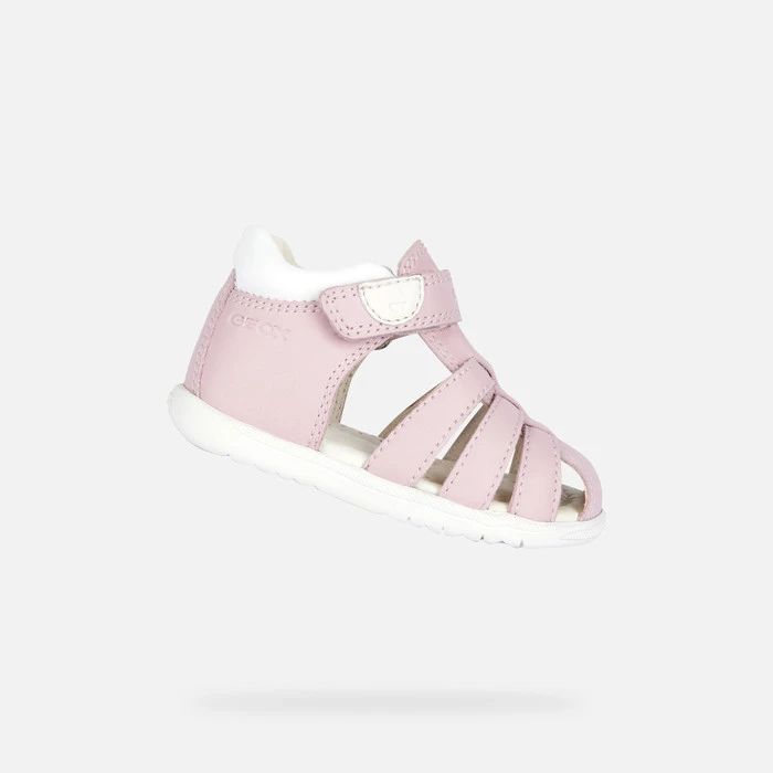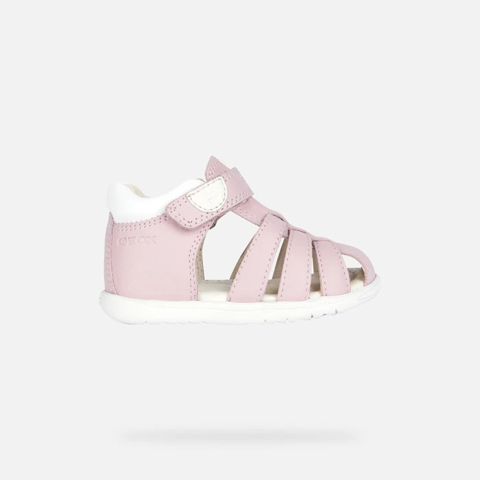 Lightweight breathable first-steps sandal for baby girls with a laid-back vibe and feminine feel. Rendered in a soft pink hue, Macchia boasts a supple fisherman’s upper made from nappa and a leather-effect material. This soft comfortable piece of footwear protects little feet and allows them to flex in complete safety.