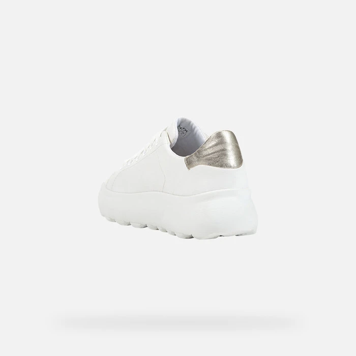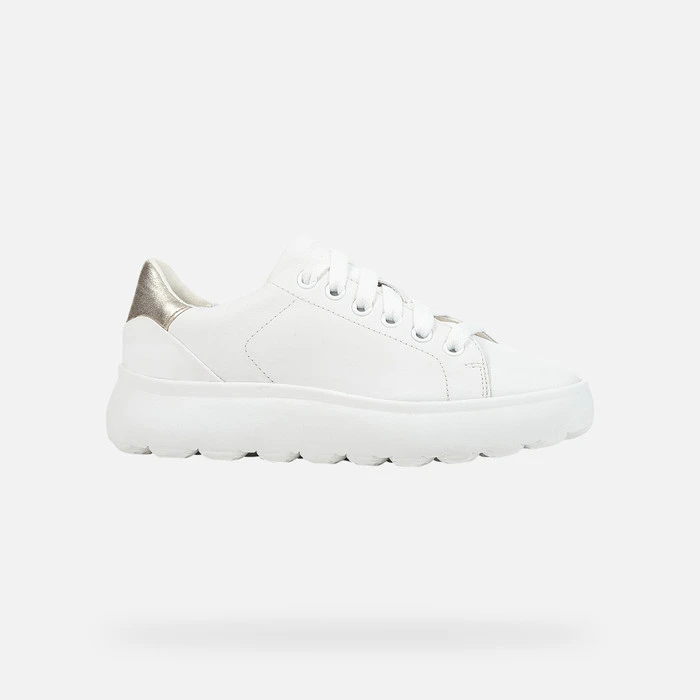 Women’s ultra-comfortable low-cut sneaker created for stylishly active urbanites. Crafted from supple white nappa with gold color detailing in metallic leather, it exudes plenty of feminine contemporary appeal and street-savvy stylishness. Sphericaâ„¢ EC4.1 has been set on a chunky high-tech trendy sole and provides an exceptional cushioning effect, soaking up knocks and bumps from the ground.