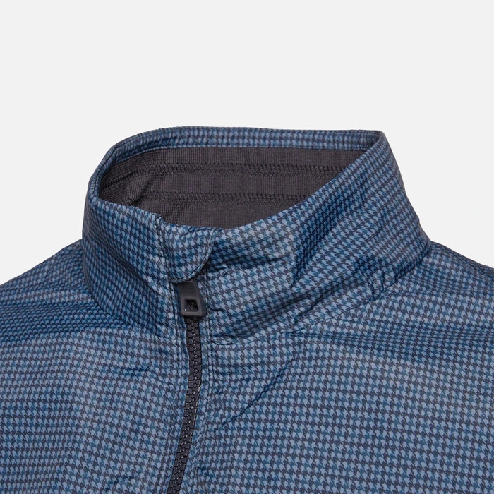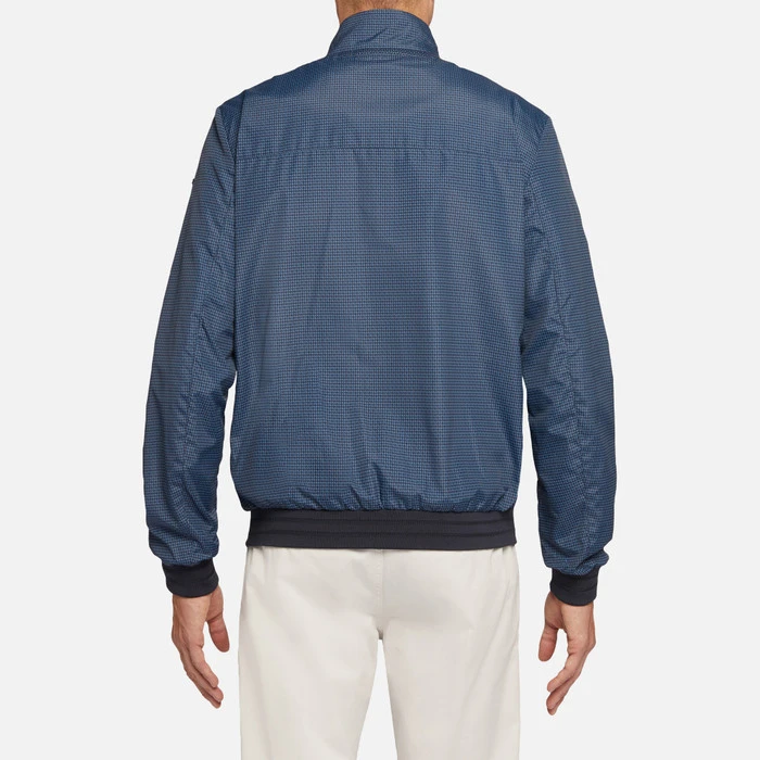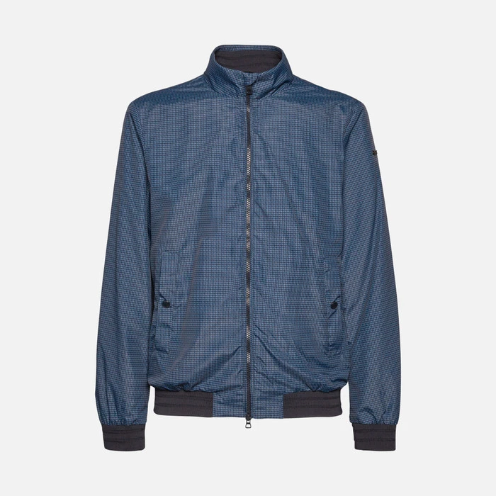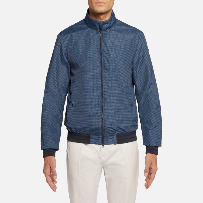 Men’s comfortable breathable short bomber jacket with a formal inflection. This version in a casual-chic dark-blue palette has been crafted from lightweight polyester in a micro-check pattern with a water-repellent windblocking finish. Vincit is a versatile functional jacket designed for everyday wear and suited to office-appropriate looks and refined leisuretime outfits alike.