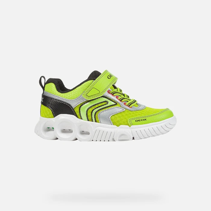 Wroom has been made from a mixture of mesh and a leather-effect material with a tumbled finish in lime green and black. The perfect way to create an attractive active-looking aesthetic, it features multicolored lights built into the outsole which will elevate casual outfits even more. Flexible, breathable and lightweight, this is the perfect sneaker for action-packed adventuresome days.
