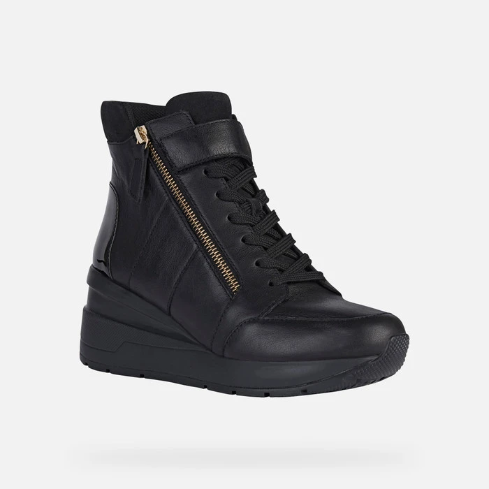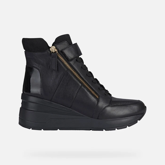 Women’s ankle boot set on a wedge with a running-shoe style. Zosma is a versatile black ankle boot made from nappa and suede with an informal modern feel which has been further enhanced by the built-in wedge designed to ensure the utmost comfort in all circumstances.