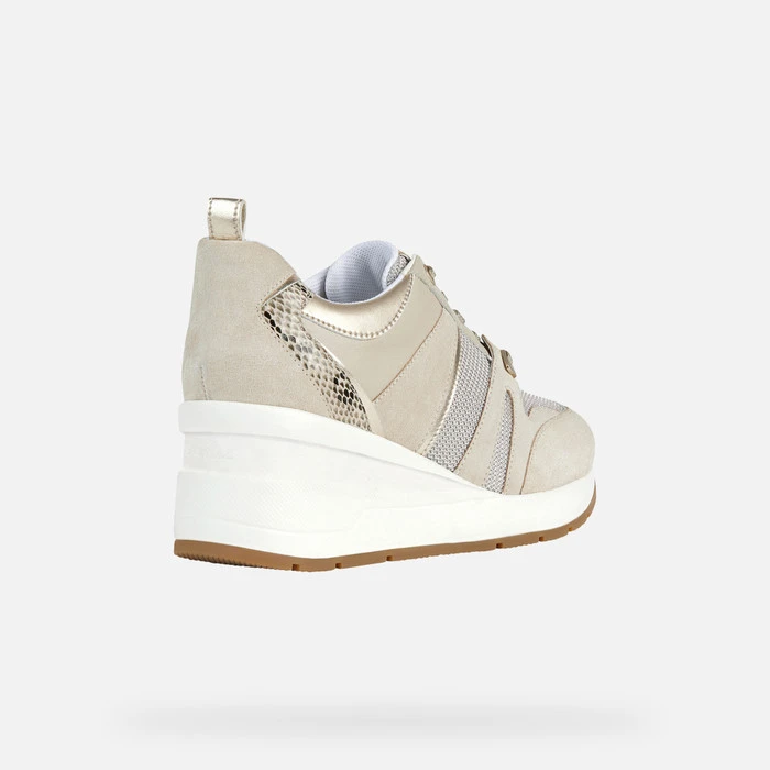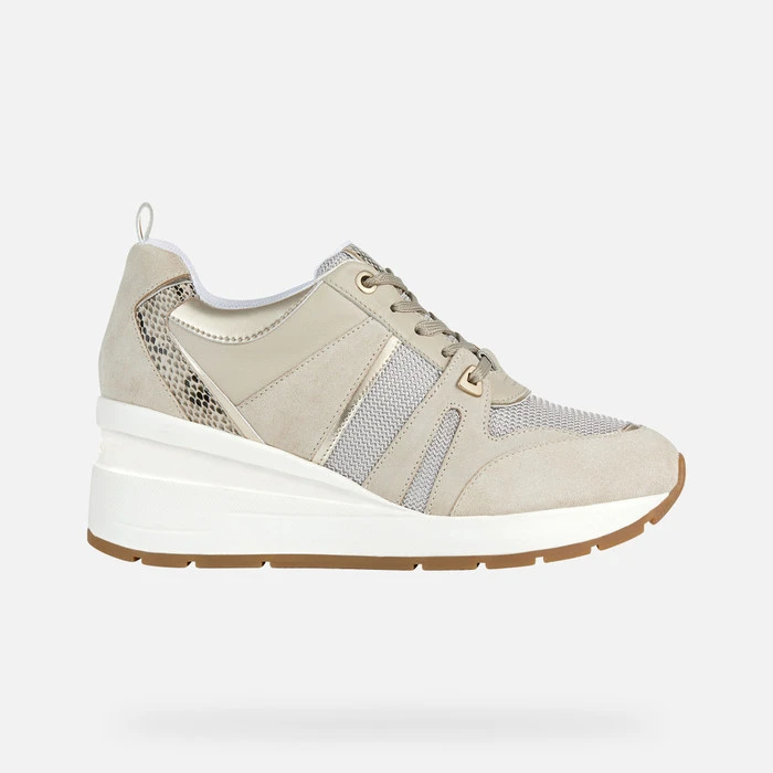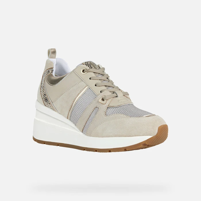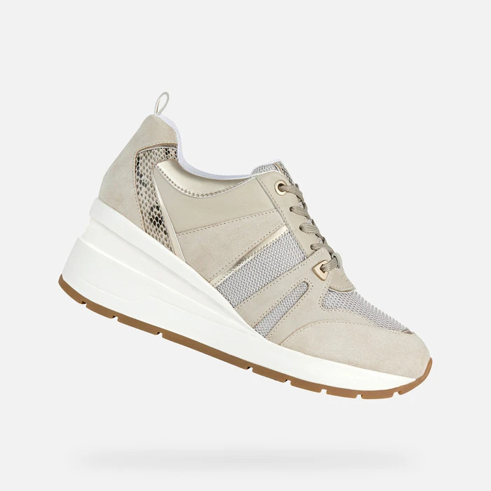 Women’s wedge sneaker loaded with bold charm and casual stylishness. This version boasts a sporty-style upper made from suede and a shiny material in a versatile light-beige palette. Zosma was designed with everyday city styling or leisuretime dressing in mind and has a figure-flattering aesthetic while pampering feet for a blissful feeling of well-being all day long.